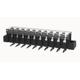 Single layer PCB fence terminal,nominal current20A.Rated voltage(UL):300V,Rated cross section:22~12AWG,pitch:10mm,Color:black,Contact surface:Tin