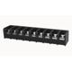 Single layer PCB fence terminal,nominal current20A.Rated voltage(UL):300V,Rated cross section:22~12AWG,pitch:10mm,Color:black,Contact surface:Tin