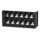 Single layer PCB fence terminal,nominal current20A.Rated voltage(UL):300V,Rated cross section:22~12AWG,pitch:10mm,Color:black,Contact surface:Tin