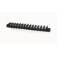 Single layer PCB fence terminal,nominal current20A.Rated voltage(UL):300V,Rated cross section:22~12AWG,pitch:10mm,Color:black,Contact surface:Tin