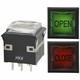 Pushbutton Switches Low Profile Illuminated Pushbutton Switches DPDT ON-(ON) PCB Mount Square 0.4VA 28V AC/DC Straight PC RED / GREEN Super Bright Bi-Color LED Flat Cap Clear with Legend OPEN CLOSE